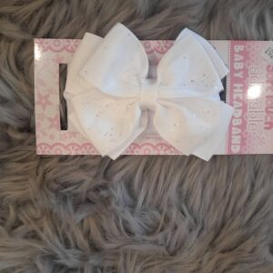 £2.50Mini White Lace headband with satin and organza bow.